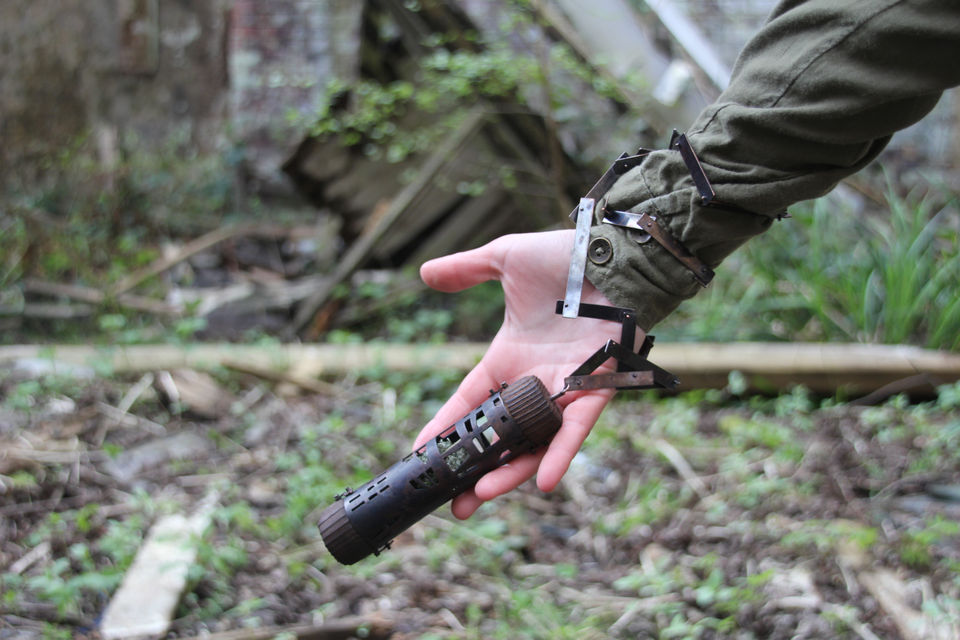 This collar piece explores climbing into the ruin- which involves ducking through rusty bars, getting dirty, opening rusty hinges...